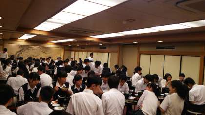 5月27日、夕食風景です。皆、和気あいあい、そして、食べきれないくらいの美味しい食事が出ています。