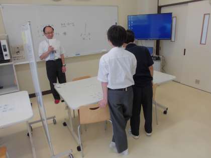 先生チームとの対決で、前半は「ことば集め」。後半は「お店はどこ」というコミュニケーションゲームをしました。生徒たちは、今まで見たこともないぐらいよく話し合いができていて、まるで魔法でも見ているように感じました。