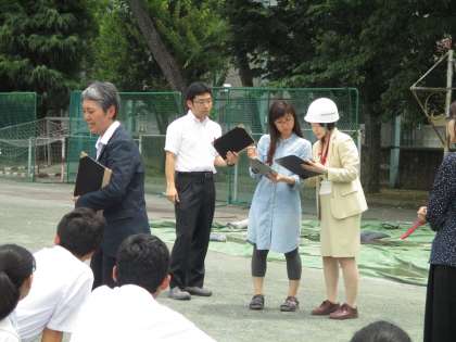 本日、6月の避難訓練が行われました。「東京都を含む関東地方全域に非常に強い地震が観測されたこと」を想定したものでした。緊急地震速報が流れ、校内放送の後、一斉に校庭に避難を開始しました。放送終了から避難、報告、点呼完了まで約3分20秒!真剣に訓練に取り組みました。