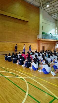 河口湖林間学園に到着し、開園式を行いました。いよいよ学園での生活が始まりました。