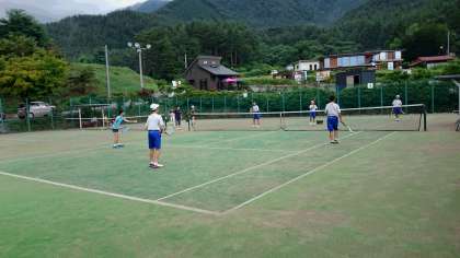 テニス部も雨が上がったので、大石テニスコートで練習をしました。