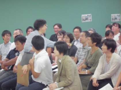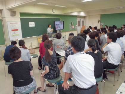 日野市は、全国に先がけてUDによる授業づくりに取り組んできたことで知られますが、それを中心となって推進されてきたのが宮崎先生です。研修会では、模擬授業なども取り入れながらわかりやすくUDの理念を教えてくださいました。さっそく2学期の授業からUDの視点で授業を行っていこうと、参加したおよそ80名の教員が心を新たにすることができた、充実した素晴らしい研修会となりました。