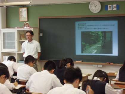 今週(9/4〜9)は“美しい日本語週間”となっていて、教科「日本語」の授業を公開しています。今日(6日)は、5時間目に佐藤一成主任教諭による日本文化領域の研究授業がありました。3年C組の生徒たちは、グループワークを通して日本のすまいの特徴について深く考えることができた様子です。6時間目の協議会では、先生たちもグループワークを行い、どのように授業を展開させていくかについて深く考えることができました。