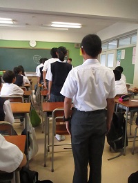 9月20日(水)「将来に向けたマナー講座2」と題し講習会を行いました。前回行ったマナーの意義やあいさつの仕方を基礎として、今回は各教室で全員が実践しました。