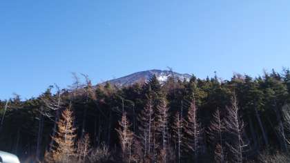 フィールドセンターをあとに…富士山、4.5合目、奥庭へ…只今到着。12時45分富士山頂上も見えます。
