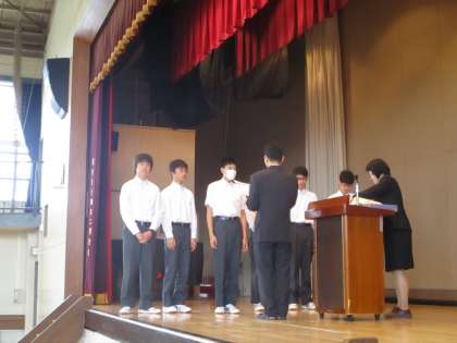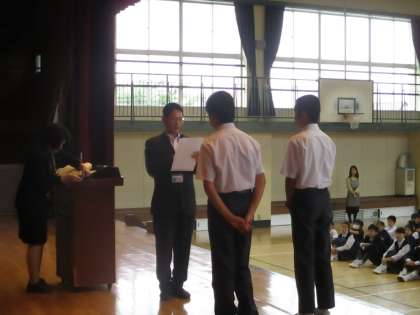5月7日全校朝礼がありました。校長講話のあと、部活動等の表彰がありました。