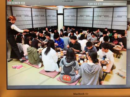 19時から大広間で夕食を食べました。早めの昼食だったので、みんなしっかりと食べました。メニューはハンバーグ等の洋食でした。