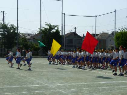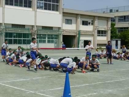 5月16日 1・2校時に2年生の体育祭練習がありました。行進練習、学年種目「台風の目」、演技種目の練習をしました。朝練習から続けての練習でしたが、集中して取り組むことができました。