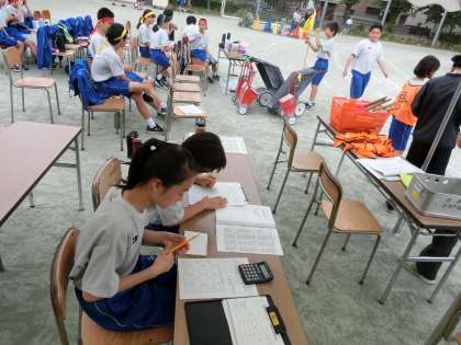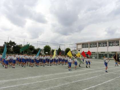 5月23日水曜日、曇りから降雨が予想される天気予報でしたが、体育祭予行練習を実施しました。昨日の係会での打ち合わせの内容を実際の予行練習で確認をしていきました。競技や演技を進めながら、出発合図のタイミングや用具の位置の確認、得点集計のやり方等々それぞれの係内で細かく仕事内容や動きを打ち合わせしながら予行を実施しました。あいにく11時過ぎに雨が降ってきてしまい、急遽体育館での閉会式・校歌練習と係会に切り替えました。残り2日間で競技・演技の質を高め、生徒たちが躍動する体育祭に向けてがんばります。