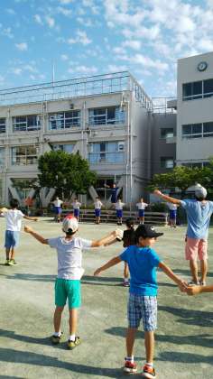 地域小学校「夏休みラジオ体操」尾山台中生ボランティア大活躍