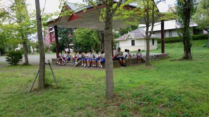 大池公園で部活動ごとにまとまって昼食をとりました。