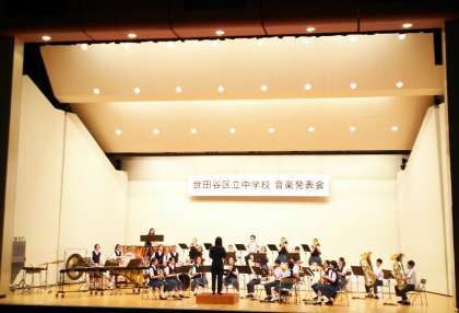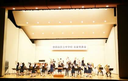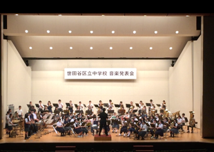 8月28日(火)世田谷区民会館にて「音楽発表会」が行われました。尾山台中学校は都吹奏楽コンクールで金賞を受賞した「イーストコーストの風景」を演奏!堂々とした圧巻の演奏でした。2曲目の「ドラえもん」では、得意の振付を交え、楽しく元気な演奏で会場を魅了しました。