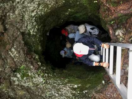 河口湖フィールドセンターでは溶岩樹形を見ました。雨が降ってきて気温が10度くらいで寒かったです。