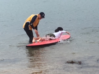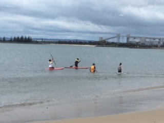 パドルボーディングはサーフボードの上に立ってパドルで漕ぎます。入るまでは寒そうでしたが、海に漕ぎ出してみたら、夢中で寒さは忘れてしまいました。