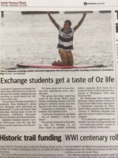 本日地元紙South Western Times に交流プログラムの件と多少の丸山のコメントが掲載されました。同紙のフェイスブックでも載っています。