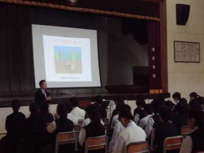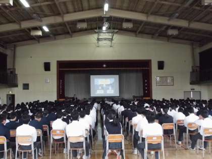 本日1時間目に、株式会社コヤマドライビングスクール 川野様、古川様に講師として来ていただき、自転車安全教室「正しい自転車の乗り方」について講義をしていただきました。生徒にとって一番身近な乗り物であり、交通手段でもある自転車について改めて学び、そして自分たちが交通事故の被害者にも加害者にもなりえることを実感する良い機会となりました。