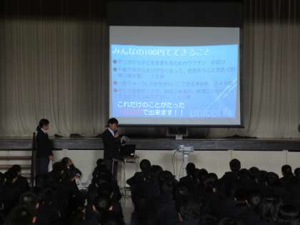 また、生徒会からはユニセフ募金や、いじめ○ヶ条についての説明がありました。