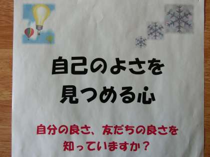 12月17日月曜日、人格の完成について考える朝礼がありました。本校教員から今月のテーマの「自己のよさを見つめる心」についての講話がありました。以下講話の概略です。