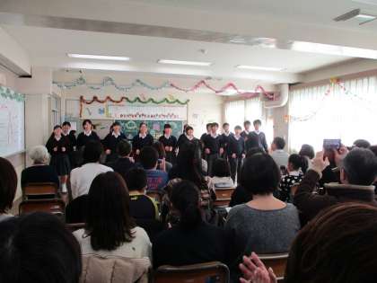 「Oh Happy Day」の合唱でオープニングを飾り、打楽器3重奏「Kerberus Drums」、木管7重奏「VARANO&INVIERNO」、金管8重奏「月の旅人」とアンサンブル演奏が続き、最後に「シンデレラガール」「サンタが街にやってくるin Swing」「Shake It Off」でコンサートは最高潮に盛り上がりました。保護者・地域の方・教職員も元気をいただく心温まるクリスマスコンサートとなりました。