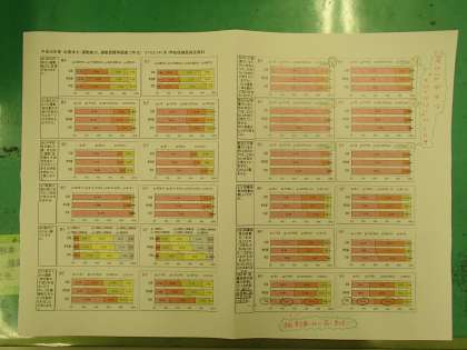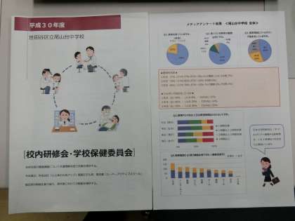 本校養護教諭から本校生徒の健康診断の結果やメディアアンケート結果の分析の報告があり、続いて本校体育科から「心と体の元気アップ」「スーパーアクティブスクール」の取り組みを振り返り、来年度に向けての取り組みを検討しました。その後グループ協議をおこない、最後に学校医、学校歯科医、学校薬剤師からご指導・ご助言をいただきました。尾山台中学校の生徒の健康について理解するための良い機会となる研修会でした。
