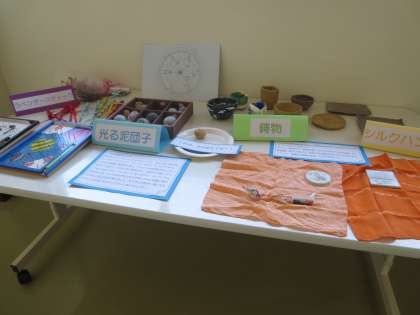 校外学習で作った鋳物やハンカチ、授業で作成した光る泥団子やラベンダースティックなどを展示しました。