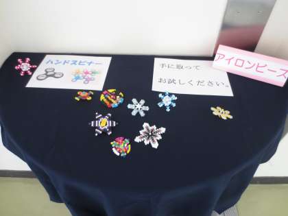 中でも、アイロンビーズの応用で作ったハンドスピナーは、みんな回して楽しんでいました。また、ボッチャ体験コーナーにも生徒がたくさん集まっていました。