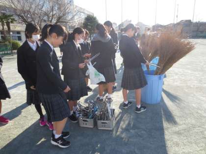今年度最後のクリンクリンだったということもあり、1・2年生のほとんどが参加しました。ほうきやトングを片手に、学校周辺の清掃に励みました。