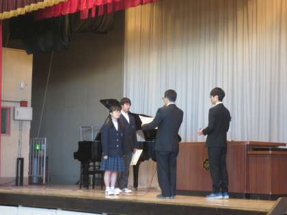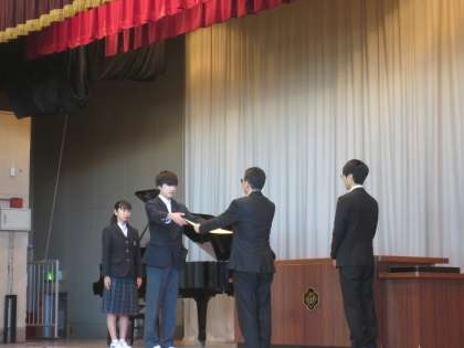 が選ばれ、表彰されました。3年間、学業に努力した成果です。おめでとうございます。