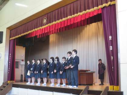 また、世田谷区から吹奏楽部が表彰されたのを、全校生徒の前でも表彰されました。1年間の頑張りが、3年連続の金賞へつながりました。本当に、おめでとうございます。