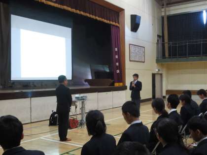 本日、(株)教育ネット 米田 直哉様 を講師の先生としてお招きし、「日常的に利用している『インターネット』,あなたはどこまで知っていますか?〜正しい知識,特性〜」という内容でセーフティ教室が行われました。