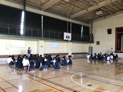 本日は、6時間目に最終の事前指導がありました。(写真は生活班ごとに分かれての指導のようす。)