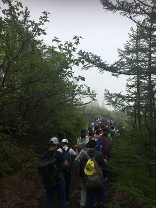 五合目は気温16度.雲の中ですが、散策スタートです。