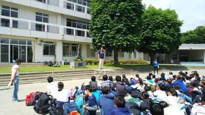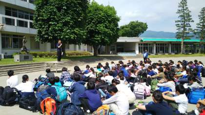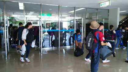 無事に宿舎に到着!実行委員会の司会で、管理人の小林先生、校長先生から激励をいただき、お部屋に入りました。