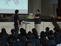 7月1日(月)の朝礼の中で、生徒会役員会が中心となって制定した「いじめ防止7か条」の制作とその取り組みについて、表彰式が行われました。学校運営委員長さんより講話をいただき、表彰状を贈呈していただきました。