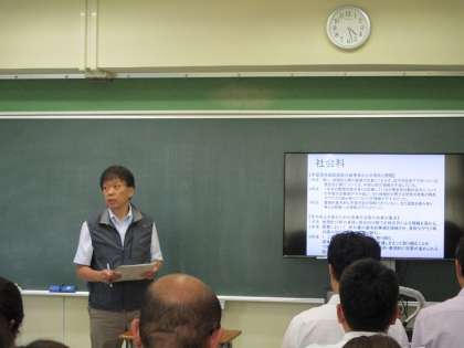 その後、被服室で3小中学校の教員が一同に会し全体会を行いました。4月に実施した「学習習得確認調査」の結果をうけ、小学校・中学校の立場から分析した内容を発表しました。各分科会から、報告をした後、最後に担当指導主事より指導講評をいただき幕を閉じました。