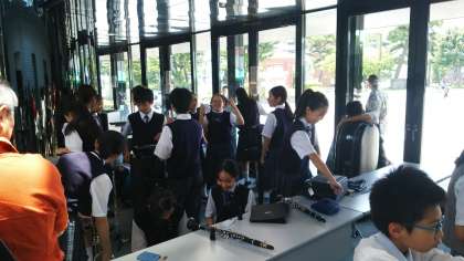 吹奏楽部は8月8日(木)府中の森芸術劇場(写真左)の「どりーむホール」にて、演奏しました。演奏後の吹奏楽部員の達成感あふれる表情(写真中央 演奏後の写真撮影風景)が印象的でした。本年度は「東日本部門」で銀賞を受賞しました。応援してくださった、保護者・地域の皆さまありがとうございました。