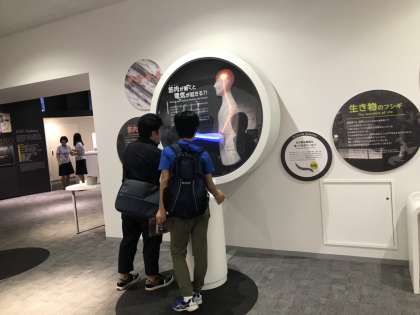 午前中は、産業技術総合研究所の地質標本館で、火山の噴火の実験を行ったり、サイエンススクエアで最先端技術について学びました。