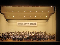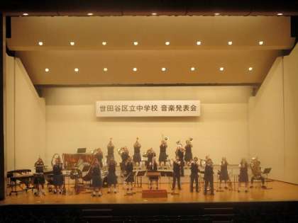 8月29日(木)世田谷区中学校音楽発表会が行われました。尾山台中学校は午後の部4番目の演奏でした。曲目は都コンクールで演奏した「サムソンとデリラより「バッカナール」。伝統ある尾山台中吹奏楽部の演奏は会場を魅了しました。2曲目の「世界はあなたに笑いかけている」ではキレのよいパフォーマンスで会場を盛り上げました。
