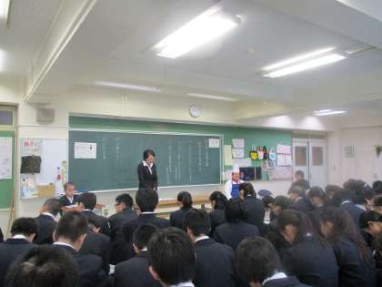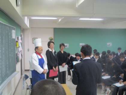 11月27日、総合的な学習の時間「地域の方のお話を聴く会」が行われました。講師はトラットリアロアジ店長様、三菱UFJ銀行支店長様、保育園理事長様、3名の先生方です。
