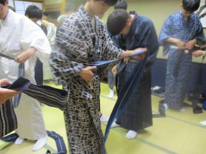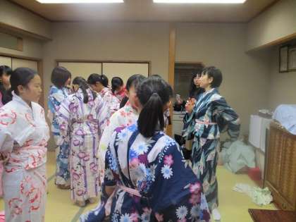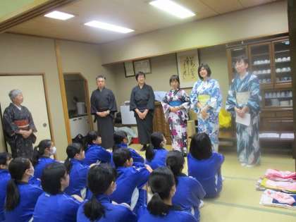 12月20日、3年生、教科日本語「日本文化」の授業では、「ゆかたの着付け」を行いました。「自由が丘まるやま」様、地域の方含め7名の講師の先生方をお迎えしました。前半は着物の歴史や着物の特徴などについて教えていただき、自身で着付けに挑戦しました。