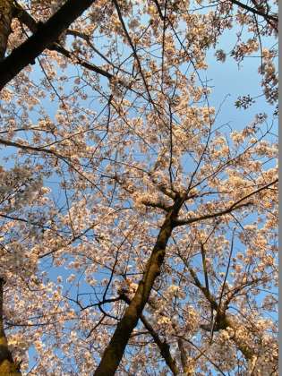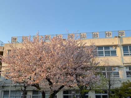 尾山台中学校の一番大きな桜の木、満開の写真を贈ります。