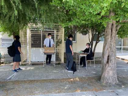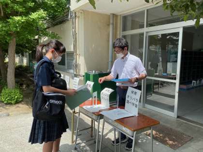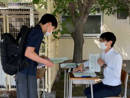 初夏を思わせる、日差しの強い1日となりました。本日は2・3年生の分散登校でした。春休みの課題や、臨時休業中の課題を提出しました。また、副教材や次の課題を配布しました。新クラスを発表することもできました。