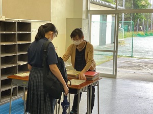 本日は2・3年生の分散登校でした。2回目ということもあり、ルートに従って提出物など提出することができました。ルートの最後は新担任から、本日の配布物を配布しました。学年だよりやホームページで再度確認し、締切日までに、宿題にチャレンジしてください。