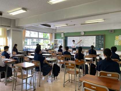 本日は2・3年生の「第3回資料配布・回収日」でした。学級を2つのグループに分けて、教室での学活形式でした。校門では、非接触型体温計で、ひとり一人体温を測りました。新学年の昇降口から各教室に向かいます。途中、必ず石鹸も使って入念に手洗いし、教室の席に座りました。座席についたら、ハンカチと体温記録表を机に置き、担任がチェックします。これからも、マスク・ハンカチ・水筒を忘れずもってきてください。