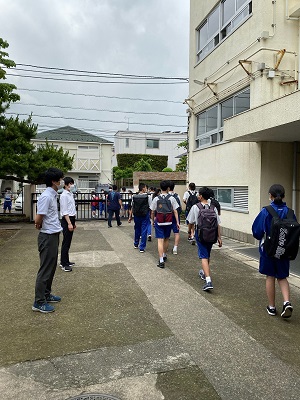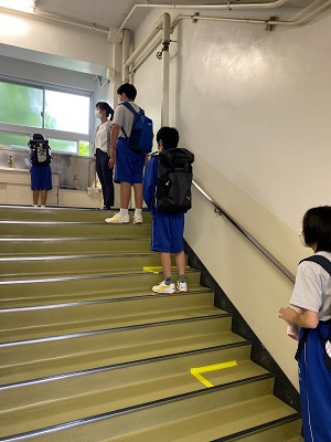 本日はβグループの分散登校でした。「尾山台中学校の「新しい生活様式」」「学校生活の手引き」を使って安全・安心な学校生活について、約束事項の確認をしました。「新入生オリエンテーション冊子」も使い、尾山台中生としての心構えや、校内巡りに取り組みました。