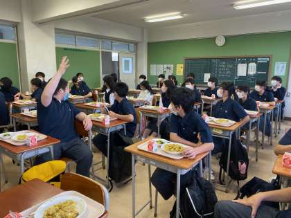 本日より、全員登校、6時間。給食再開、昼休み再開、部活動再開が大きな追加事項といえます。給食前の学活で「尾山台中学校「新しい生活様式」通常教育活動開始版冊子」を使って、担任より丁寧に説明がなされました。1年生にとっては中学校初めての、2・3年生にとっては、本当に久しぶりの給食となりました。「ごちそうさま」の後に質問すると、皆「おいしかった!」と元気に答えが返ってきました。いくつかの制約の中で、不便もありますが、これもまた少しずつ軌道にのせていきましょう。
