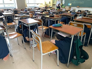 本日は、学級の組織づくりや学級目標を決めなど、学級づくりに取り組みました。6月の避難訓練もありました。地震を想定し、雨の日バージョンで、一時避難と廊下に整列点呼しました。少しずつ、通常の学校生活に戻ってきていることを嬉しく思いました。