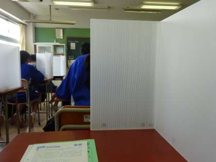 授業や給食時には、各生徒机に世田谷区より配布されたパーティションを設置しています。