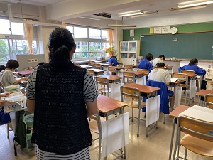 「放課後学習」は今週2回実施されました。今回は自席で、自分が持ってきた課題に挑戦しました。60分間ですが、お喋りはせず、集中して課題に取り組みました。見守りボランティアの方も感心して見守ってくださいました。