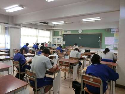期末考査範囲の教材を各自持参して取り組んでいます。